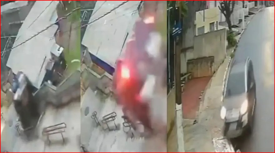 ब्राजील में हुआ भीषण सड़क हादसा: हवा में उड़ी कार खाई में गिरी, चालक चमत्कारिक रूप से बचा