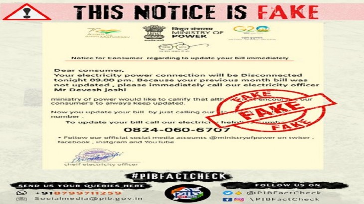 आजकल सोशल मीडिया पर एक संदेश तेजी से वायरल हो रहा है जिसमें कहा जा रहा है कि, उपभोक्ताओं को अपने पिछले बिजली बिलों को अपडेट करने की आवश्यकता है। इस तरह ग्राहक डिस्कनेक्शन से बच सकते हैं।इतना ही नहीं इसके लिए एक हेल्पलाइन नंबर भी जारी किया गया है । आपकी जानकारी के लिए बता दें कि, इस मैसेज में चेतावनी दी गई है कि अगर बिल अपडेट नहीं किया गया तो 24 घंटे के भीतर बिजली कनेक्शन काट दिया जाएगा । इसके आगे इस मैसेज में कहा गया है कि, बिजली मंत्रालय का आदेश है कि पहले अपना बिल अपडेट करें।