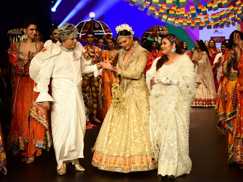The Taali actress celebrated inclusivity in her latest appearance on the ramp for the Bombay Times Fashion Week. Sushmita Sen donned a heavy yet stunning, traditional outfit designed by Rohit Verma, walking the ramp with her Taali co-stars to celebrate inclusivity and the LGBTQ community.