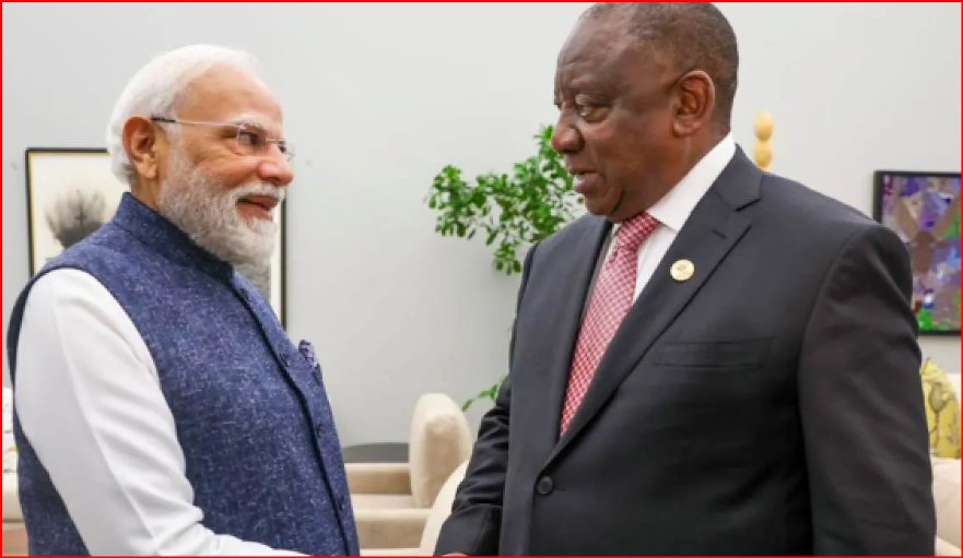 दक्षिण अफ्रीका में आयोजित जी20 शिखर सम्मेलन में भाग लेने के लिए प्रधानमंत्री नरेंद्र मोदी इन दिनों दक्षिण अफ्रीका पहुंचे, जहां उनका जोरदार स्वागत किया गया। यह पहला मौका था जब जी20 शिखर सम्मेलन का आयोजन अफ्रीकी महाद्वीप में किया गया, और दक्षिण अफ्रीका ने इसे बेहद भव्य और ऐतिहासिक तरीके से सफल बनाया। इस यात्रा के दौरान पीएम मोदी ने कई वैश्विक नेताओं से मुलाकात की और विभिन्न महत्वपूर्ण विषयों पर द्विपक्षीय वार्ताएं कीं। इन्हीं में से एक प्रमुख बैठक दक्षिण अफ्रीका के राष्ट्रपति सिरिल रामफोसा के साथ रही।