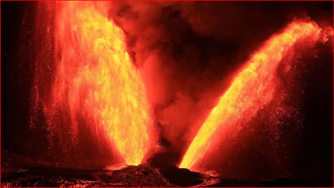 किलाउआ ज्वालामुखी फटा... शैतान की सींग की तरह निकली 1500 फीट ऊंची लावे की दो धार