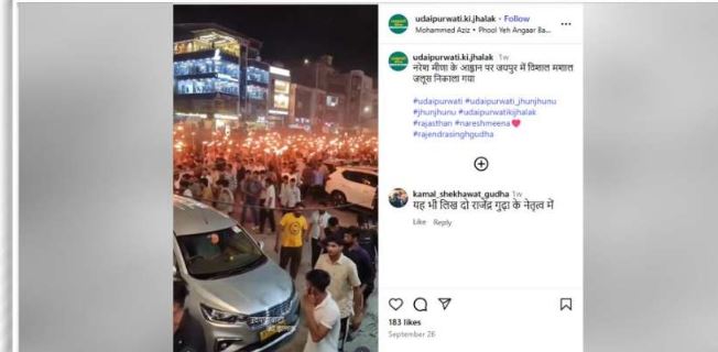 हमारी पड़ताल में यह सामने आया कि यह वीडियो उत्तर प्रदेश का नहीं है, बल्कि इसका संबंध राजस्थान से है। हमें यह वीडियो 26 सितंबर 2025 को एक इंस्टाग्राम अकाउंट, 'udaipurwati.ki.jhalak' पर मिला। इस पोस्ट के कैप्शन में स्पष्ट रूप से बताया गया था कि यह मशाल जुलूस राजस्थान के जयपुर में निकाला गया था।