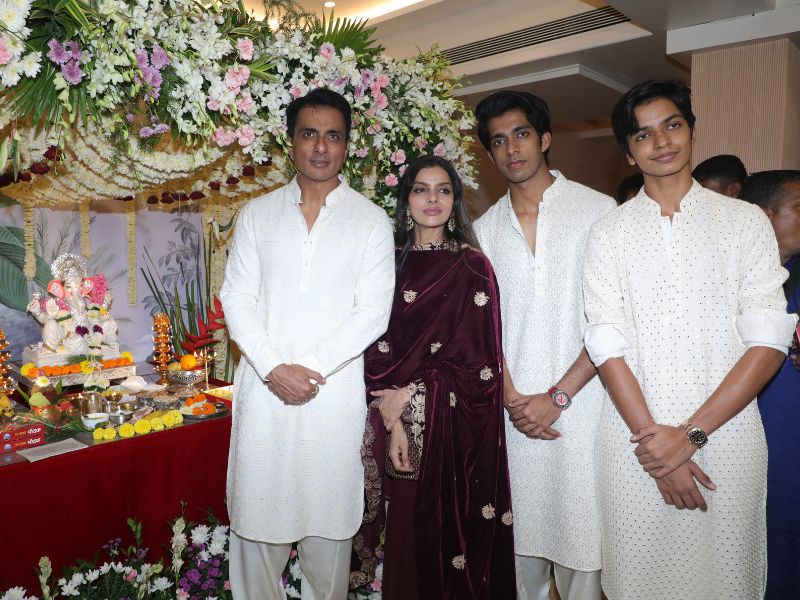 Sonu Sood Snapped Celebrating Ganapati Chaturthi At His Home