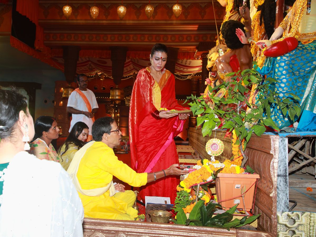 Kajol With Son Yug And Daughter Nysa Devgan Grace The North Bombay Sarbojanin Durga Puja