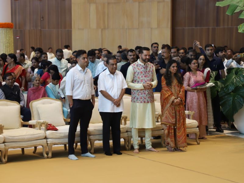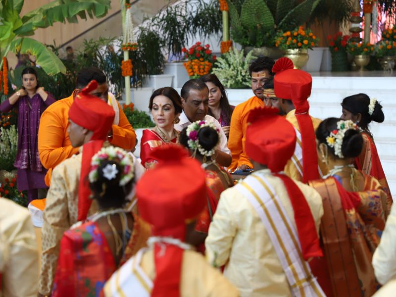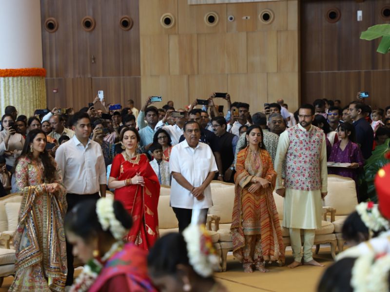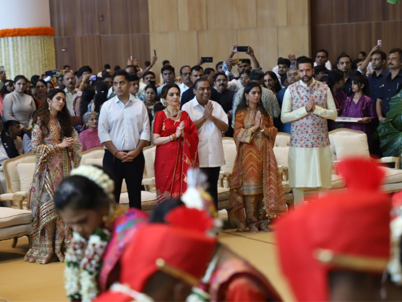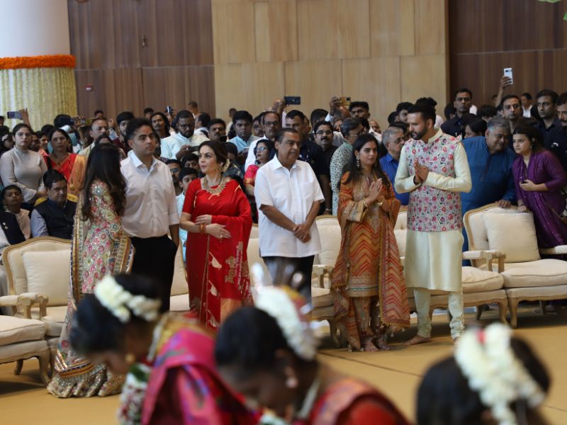 #AkashAmbani with wife #ShlokaAmbani and #IshaAmbani with husband #AnandPiramal arrive together to attend the mass wedding of the underprivileged, organized by the #Ambani family as part of #AnantbhaiAmbani and #RadhikaMerchant’s pre-wedding celebrations 💕✨💫